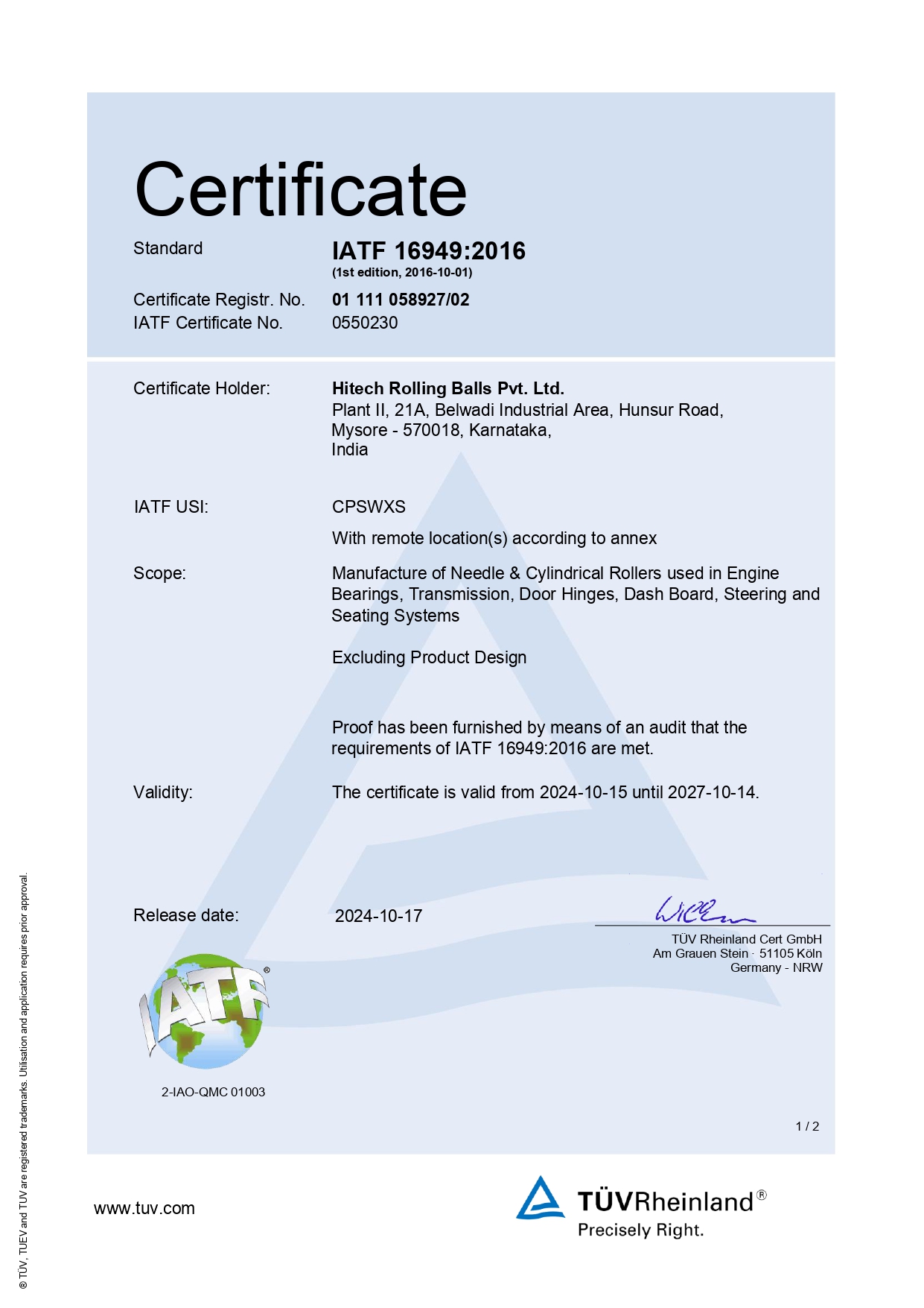 Hitech Rolling Balls Pvt. Ltd. is a medium scale industrial organization having two functional units in the fast growing industrial belts of Chakan and Mysore respectively.
